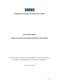 Organization for Security and Co-operation in Europe Ruth Freedom Pojman Deputy Co-ordinator for Combating Trafficking in Human Beings 10 Jahre Europaratskonvention gegen Menschenhandel –…