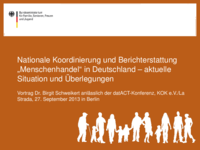 Nationale Koordinierung und Berichterstattung „Menschenhandel“ in Deutschland – aktuelle Situation und Überlegungen Vortrag Dr. Birgit Schweikert anlässlich der datACT-Konferenz, KOK e.V./La Strada,…