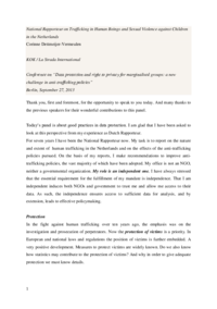 National Rapporteur on Trafficking in Human Beings and Sexual Violence against Children in the Netherlands Corinne Dettmeijer-Vermeulen KOK / La Strada International Conference on “Data protection…