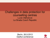 Challenges in data protection for counselling centres Lucie Otáhalová La Strada Czech Republic Berlin, 26.9.2013 DatAct conference Personal data protection act (101/2000) Personal data protecton…