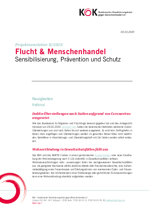 Der erste KOK-Projektnewsletter "Flucht & Menschenhandel" für das Jahr 2021 ist erschienen.