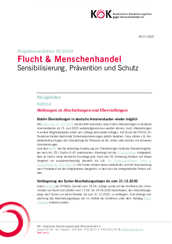 Der KOK-Projektnewsletter "Flucht & Menschenhandel" für den Monat Juni ist erschienen.