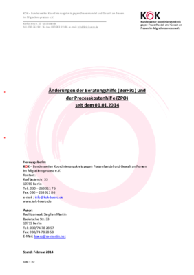 Der KOK hat eine Handreichung zu den seit 01.01.2014 geltenden Änderungen der PKH und Beratungshilfe in Auftrag gegeben.