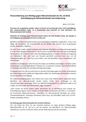 Anlässlich des diesjährigen Welttags gegen Menschenhandel möchte der KOK e.V. eine langjährige Forderung erneut bekräftigen:der Zugang zu Entschädigung und entgangenem Lohn muss verbessert werden!