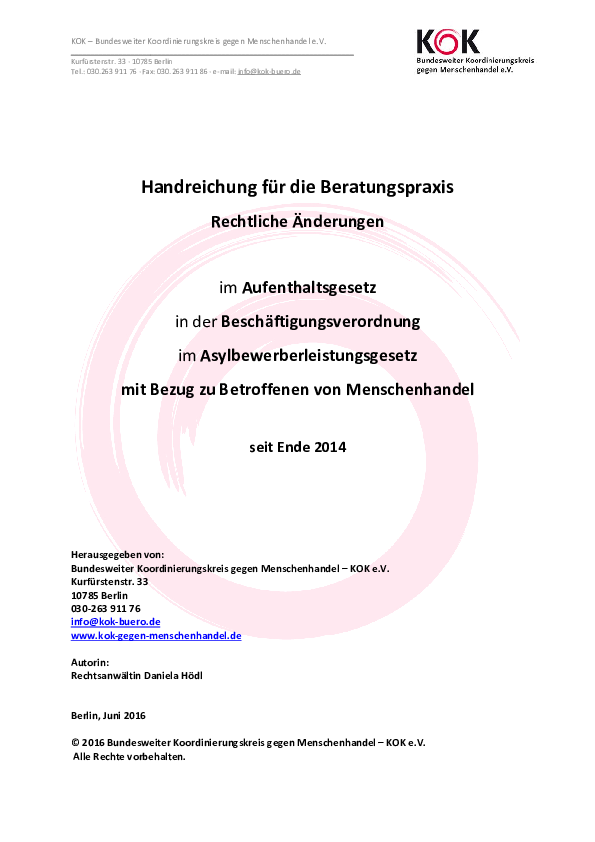 Der KOK als Schnittstelle zwischen Praxis, Öffentlichkeit und Politik hat u.a. das Ziel, die Praxis der Fachberatungsstellen für Betroffene von Menschenhandel zu unterstützen und zu informieren. Insbesondere Änderungen…