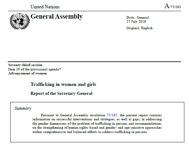 Bericht des Generalsekretärs zu Gender Dimensions im Menschenhandel