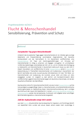 - Initiierung eines Projekts zur Stärkung der Funktionalität der Nationalen Vermittlungsmechanismen für Betroffene des Menschenhandels