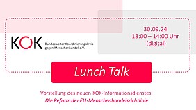 Im Juli 2024 ist die Reform der EU-Richtlinie zur Bekämpfung des Menschenhandels in Kraft getreten. Der diesjährige KOK Informationsdienst„Die Reform der EU-Menschenhandelsrichtlinie: Von guten Ansätzen und verpassten Chancen“ stellt die wichtigsten Änderungen und Anpassungsbedarfe aus Sicht des KOK e.V. vor. Es zeigt sich, dass die Reform viele wichtige Ansätze beinhaltet. Insgesamt hat die EU jedoch die Chance verpasst, ein menschenrechtsbasiertes Konzept vorzulegen, das die Position und Rechte Betroffener wirklich stärkt und Entwicklungen hinreichend berücksichtigt.