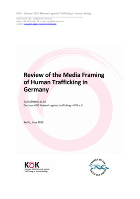 Der KOK e.V. hat im Auftrag des Ostseerats eine kurze Studie zum Framing von Menschenhandel in den Printmedien in Deutschland erstellt. Dabei wurden 50 Artikel aus sechs überregionalen Tages- und Wochenzeitungen sowie einem Nachrichtenmagazin analysiert und der Frage nachgegangen, wie das Thema Menschenhandel in den Printmedien dargestellt wird. Der Ostseerat hat diese Untersuchung in mehreren Mitgliedsstaaten in Auftrag gegeben. Grund dafür war die Tatsache, dass die Nachrichtenmedien in den letzten Jahren zunehmend über das Thema Menschenhandel berichtet haben und eine wichtige Rolle bei der Information und Gestaltung der öffentlichen Meinung spielen. Die Ergebnisse aus den einzelnen Recherchen sollen genutzt werden, um Leitlinien für Journalist*innen zur Berichterstattung zum Thema Menschenhandel zu erarbeiten.