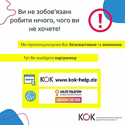 Von August 2022 bis Januar 2023 führte der KOK ein vom BMFSFJ gefördertes Projekt zur Sensibilisierung, Prävention und Stärkung von Kooperationsstrukturen für Betroffene von Menschenhandel speziell mit Blick auf Geflüchtete aus der Ukraine in Deutschland durch. Ziel des Projektes war es, den Status Quo abzubilden sowie die Herausforderungen und etwaige Bedarfe zu identifizieren, um notwenige, mittel- und langfristige Maßnahmen zum Schutz gegen Menschenhandel zu benennen. Hierfür wurden spezialisierte Fachberatungsstellen zu ihren Erfahrungen der vergangenen Monate befragt und Informationen über die Bedarfe von Geflüchteten gebündelt.